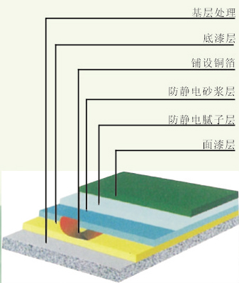 用防靜電環(huán)氧中涂調石英粉或雙飛粉批刮膩子層 |